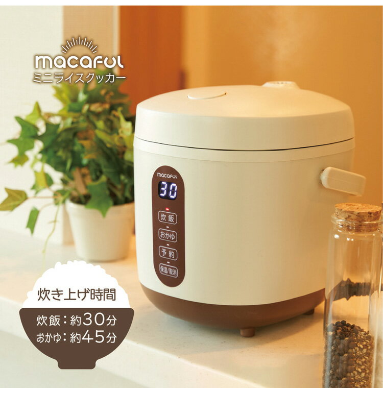 ●少量の炊飯にぴったりのミニライスクッカー●0.5〜1.5合のごはんが炊ける●美容に嬉しいおかゆも炊ける●炊飯終了後、自動的に1時間保温可能 保温ボタンで3時間保温可能●フードコーディネーター柏原歩さんと共同開発のレシピブック付!おかずやケーキが簡単に作れる定格消費電力(W):300炊飯容量(ml):90〜270(0.5〜1.5合)炊飯予約:0.5〜24時間保温機能:3時間本体寸法(mm):W187×D157×H192本体質量(kg):1.5コード長(m):1.4(差し込み式)化粧箱サイズ(mm):W238×D208×H232化粧箱重量(kg) :2外箱サイズ(mm):W498×D223×H489総重量(kg):8.6【特長】保温、スロー調理【送料について】北海道、沖縄、離島は別途送料を頂きます。