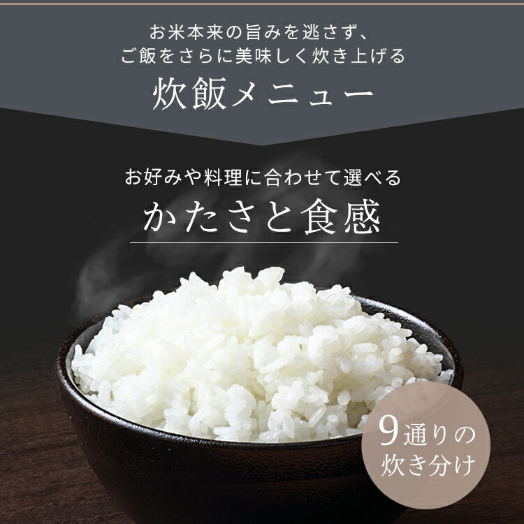 お米本来の旨みを逃さず、ご飯をさらに美味しく炊きあげる炊飯メニュー◆ お好みや料理に合わせて選べるかたさと食感かたさと食感を自由に掛け合わせる「おこのみ炊き」で9通りの炊き分けが可能。