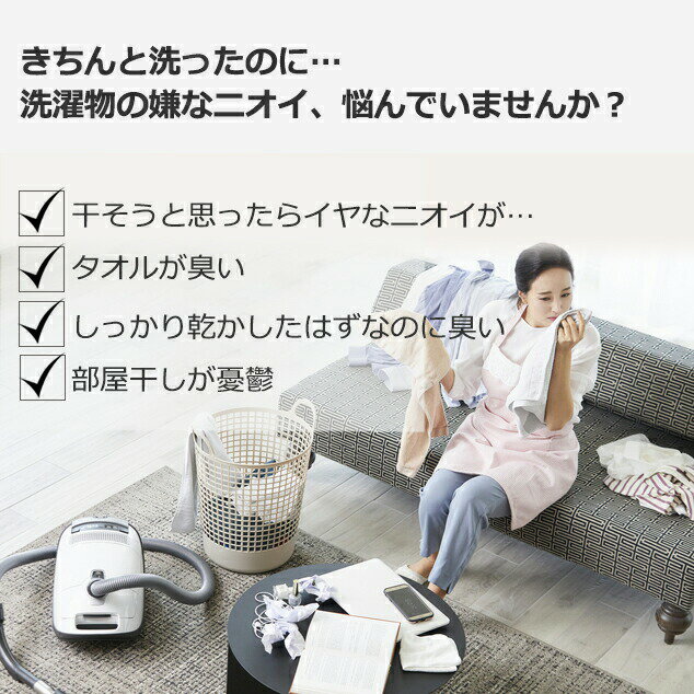 消臭効果抜群の洗剤補助剤汗臭・加齢臭・湿った衣類の臭いは、服に付着している細菌とバクテリアによって発生します。