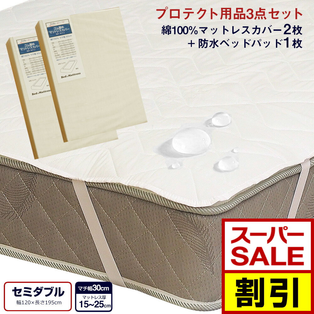 【9/5(月)24時間限定P10倍】【SS期間限定20%オフ】寝装品3点セット セミダブル(綿100%マットレスカバー G01・防水ベッドパッド ALTA-PU)綿100% ボックスシーツ 防水 ベッドパッド ピッタリサイズ おねしょパッド コットン カバー ベッドカバー シーツ パッド 詳しく見る