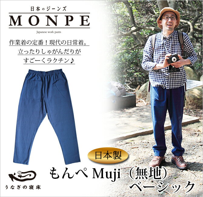 もんぺ モンペ monnpe ズボン パンツ 作業着 綿 綿100% 無地 むじ muji 柄なし 無柄 スタンダード 【送料無料】もんぺ Muji(無地)ベーシック うなぎの寝床 久留米絣 ずぼん 久留米 おすすめ おしゃれ オシャレ お洒落 メンズ レディース 男性用 女性用 普段着 旅行 ブラ