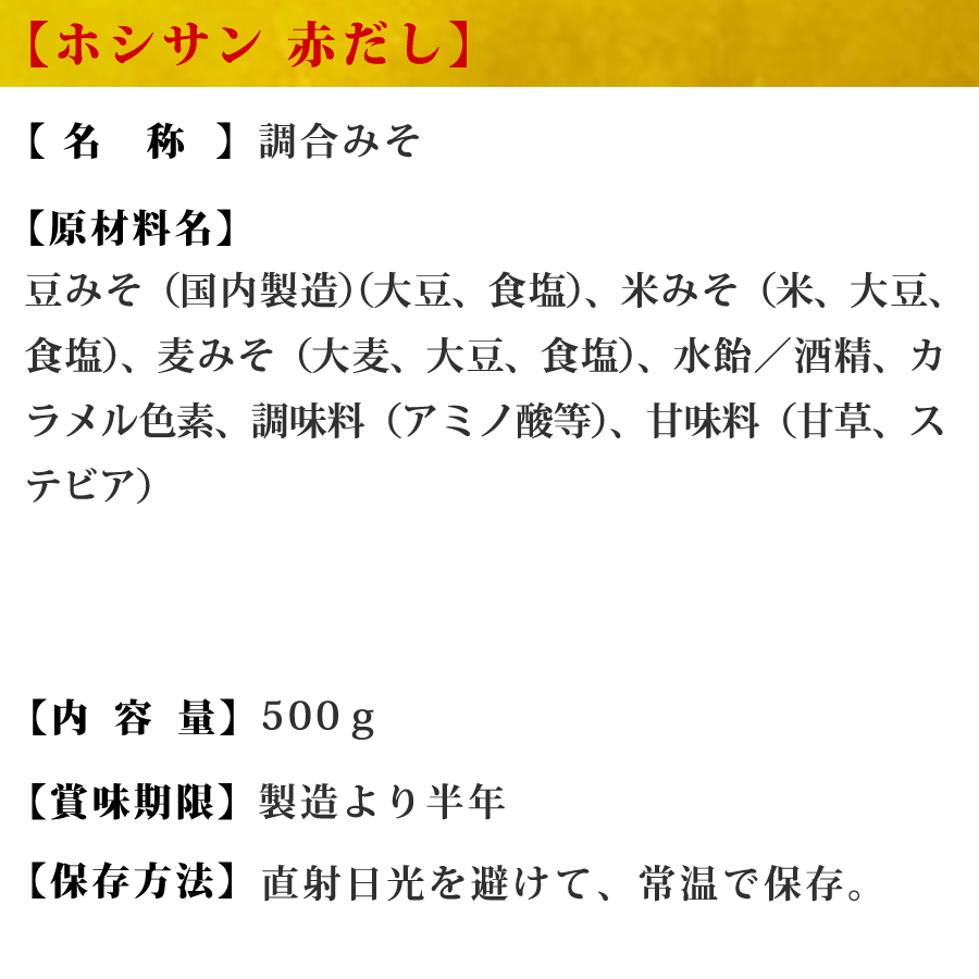 「赤だし」は豆みそ・米みそ・麦みその合わせタイプのすり味噌で塩分が9%となっています。