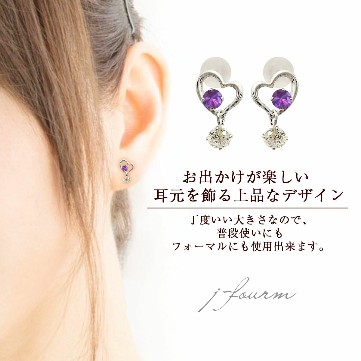 アメジスト ピアス キュービックジルコニア K10 ホワイトゴールド 3mm 2.5mm アメリカンオープンハート+3mmCZ 定番 スタッド ゴールド 両耳用 10K 送料無料 fourm クリスマス ギフト 母の日 レディース メンズ 男性 女性 ラッピング 包装 袋 誕生日 プレゼント ケース 箱 華