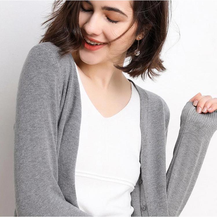 Vネックで抜け感のある女性らしいシルエットのカーディガン。