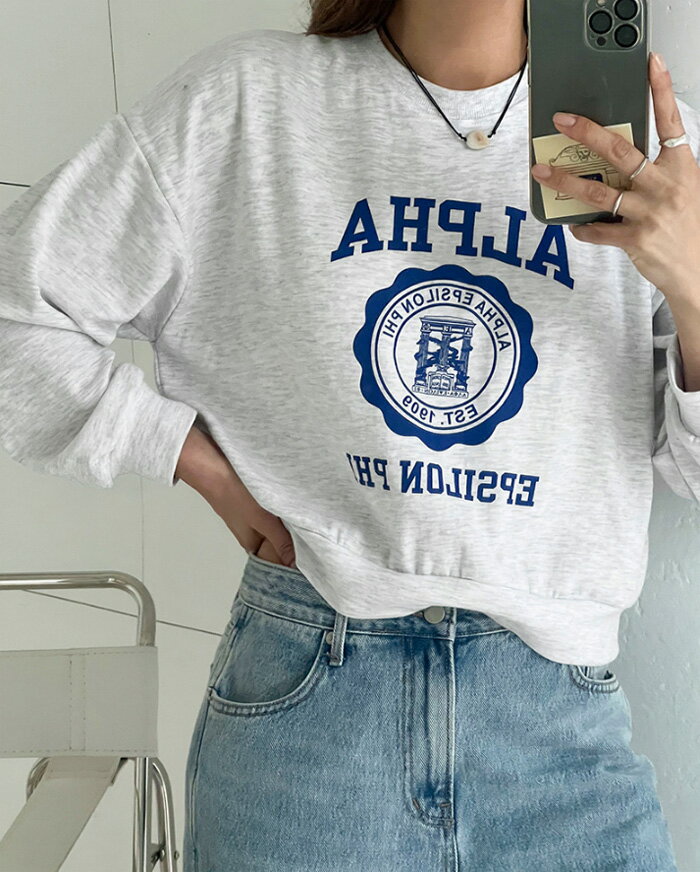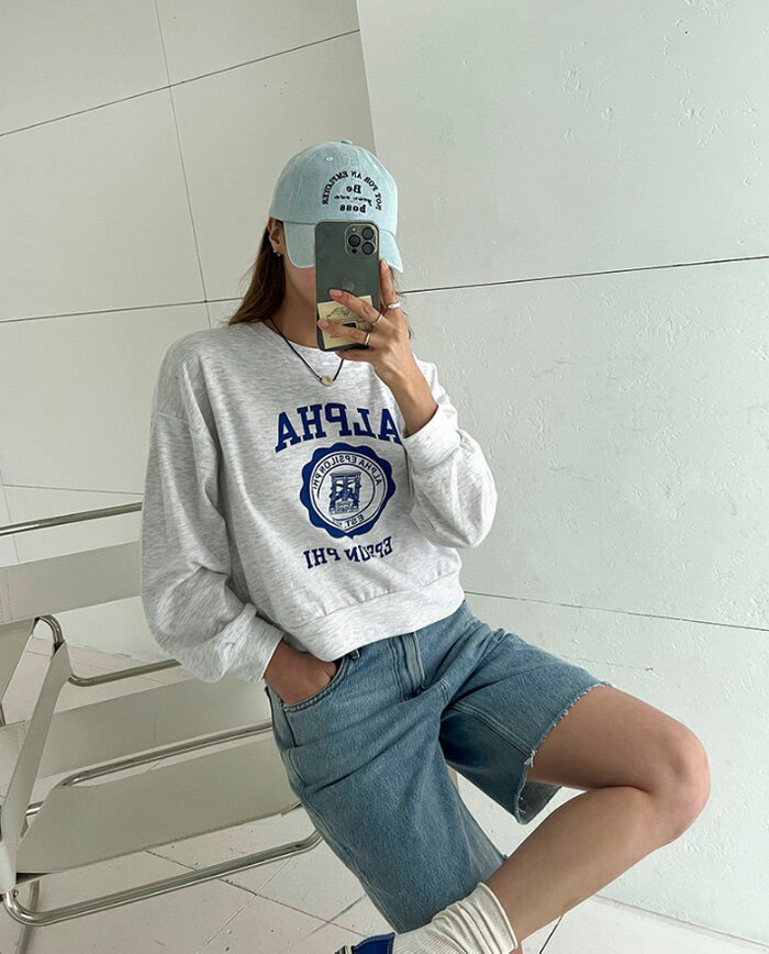 NANING9(ナンニング)クロップドトレーナーシーリングスタンプ【8/25up_ka】韓国 韓国ファッション 韓国ブランド k-fa K-ファッション k-ブランド 短丈 クロップ ショート丈 トレーナー 【5】※メール便不可