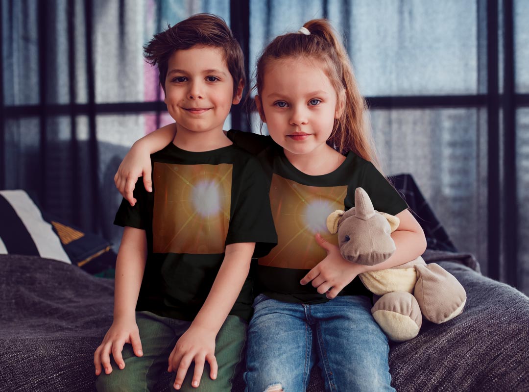 tシャツ キッズ 半袖 黒地 ブラック デザイン 90 100 110 120 130 140 150 Tシャツ ティーシャツ T shirt 002281 光 オレンジ